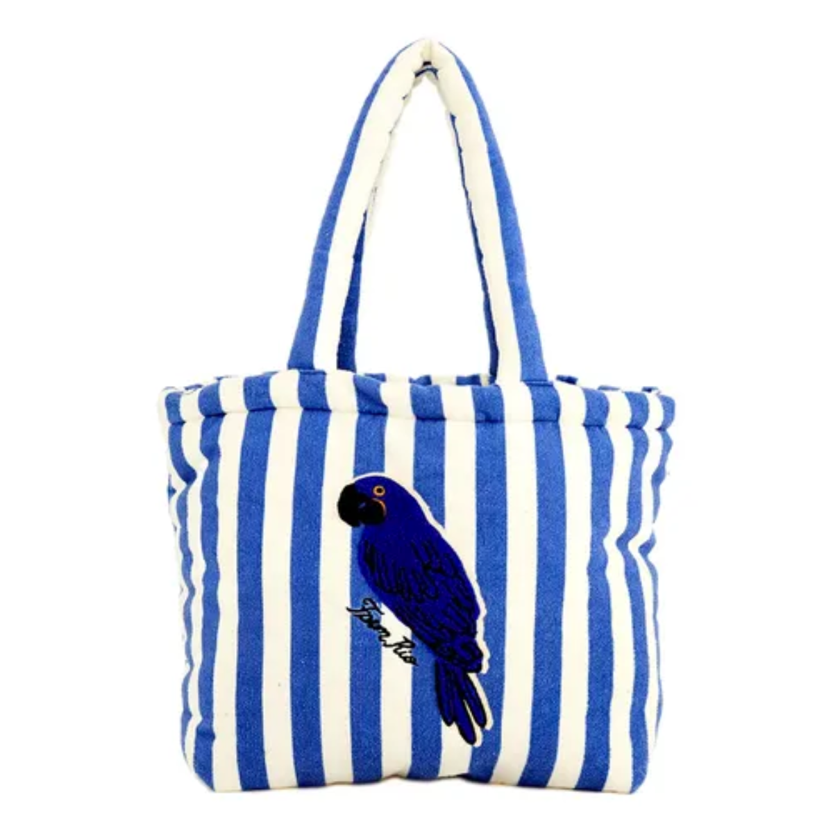 O design da Bolsa "Solzão Arara Listrado" apresenta uma estampa vibrante e cheia de personalidade, inspirada na fauna brasileira, com destaque para a arara em um padrão listrado, refletindo a identidade única da marca. O material em poliéster garante leveza e durabilidade, tornando-a ideal para o uso diário. Possui um compartimento principal amplo e aberto, perfeito para carregar itens maiores como toalha de praia, protetor solar ou livros. Suas alças confortáveis permitem usá-la no ombro, proporcionando praticidade.