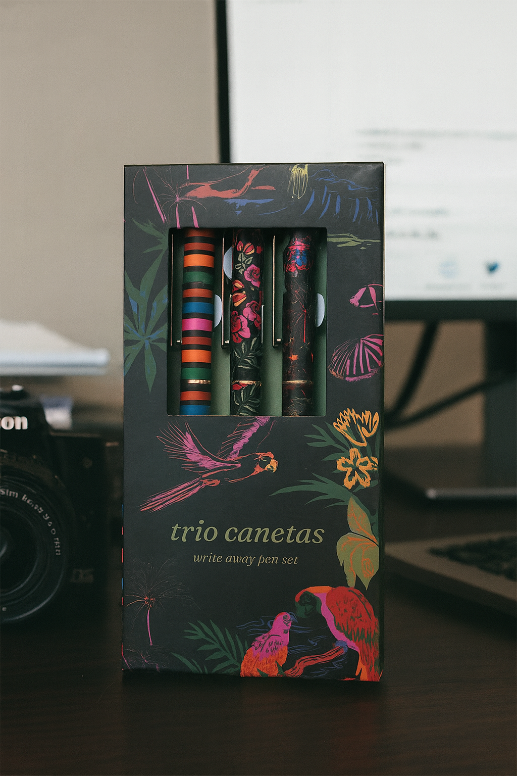 O design encantador e exclusivo da caixa torna este conjunto não apenas funcional, mas também uma adição estilosa ao seu material de escritório. Cada caneta tem uma altura de 14 cm e um diâmetro de 3,5 cm, tornando-as confortáveis de segurar e fáceis de transportar. Com um peso leve de 28 g, este trio é a escolha perfeita para quem busca praticidade sem abrir mão do estilo.